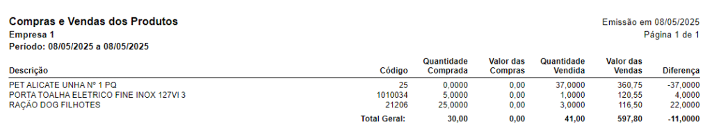 A partir do novo relatório é possível analisar as quantidades adquiridas e comercializadas dos produtos em um determinado período, além dos valores totais de compra e venda.