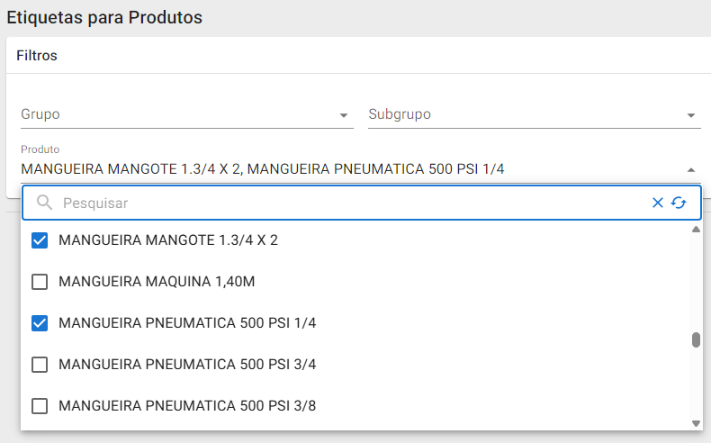 Agora é possível selecionar diversos produtos para a impressão de etiquetas.