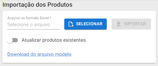 A partir de uma planilha padronizada é possível importar cadastros de produtos ou atualizar informações dos produtos existentes.