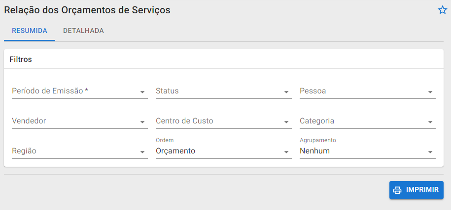 Com os relatórios resumido ou detalhado é possível analisar os orçamentos de determinado período.