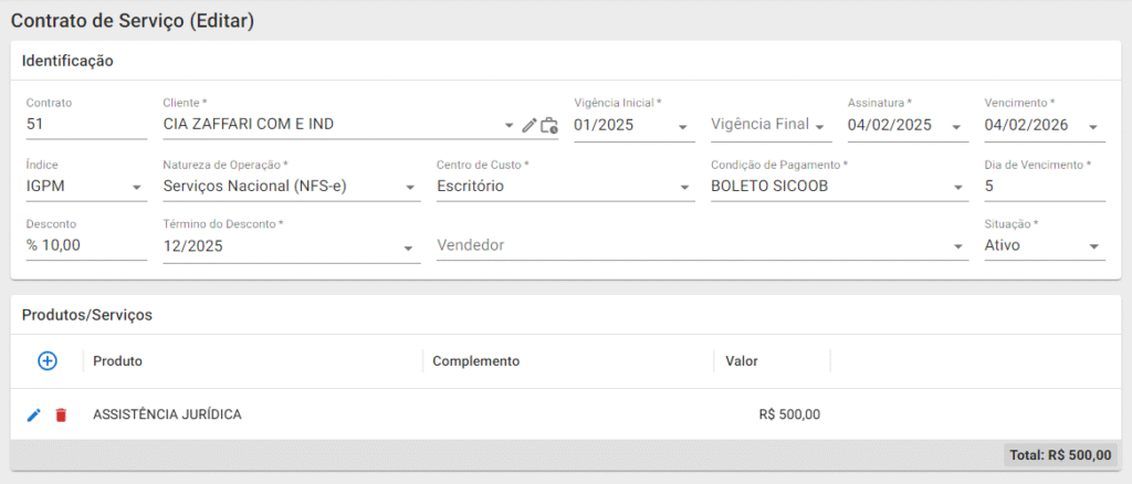 Possibilidade de definir um percentual de desconto por um período determinado no cadastro do contrato.