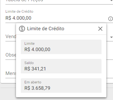Inserido ícone ao lado do limite de credito, no cadastro do cliente, para visualizar o saldo ainda disponível e o utilizado.