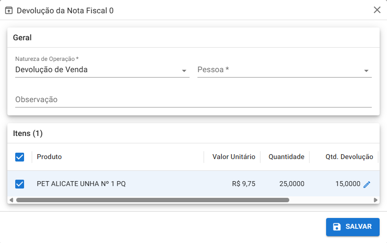 Possibilidade de realizar uma devolução de venda a partir do Frente de Caixa.