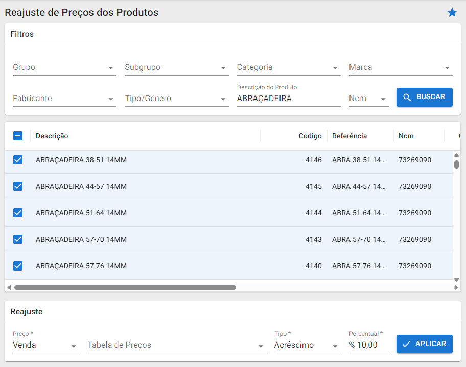 Criada ferramenta que permite atualizar em massa os preços de venda dos produtos. A partir da rotina é possível filtrar grupo, fabricante, entre outras informações.