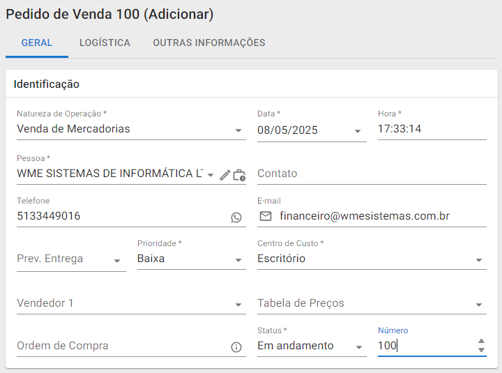 A partir de parametrização passa a ser possível controlar manualmente o número dos pedidos de venda.