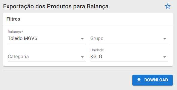 Possibilidade de gerar arquivo de exportação do cadastro de produtos para os softwares de integração das balanças Toledo (MGV 5 e MGV 6), Filizolla e Urano.