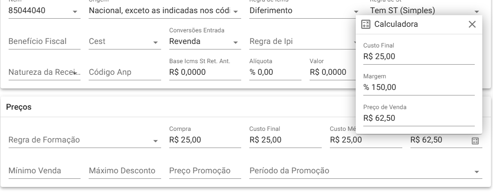 A partir de uma nota de entrada passa a ser possível visualizar e ajustar a margem de lucro para que o preço de venda seja definido.
