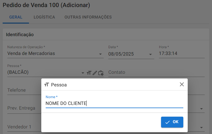 Inserido ícone que permite editar o nome do “cliente padrão” durante a digitação de um pedido de venda.