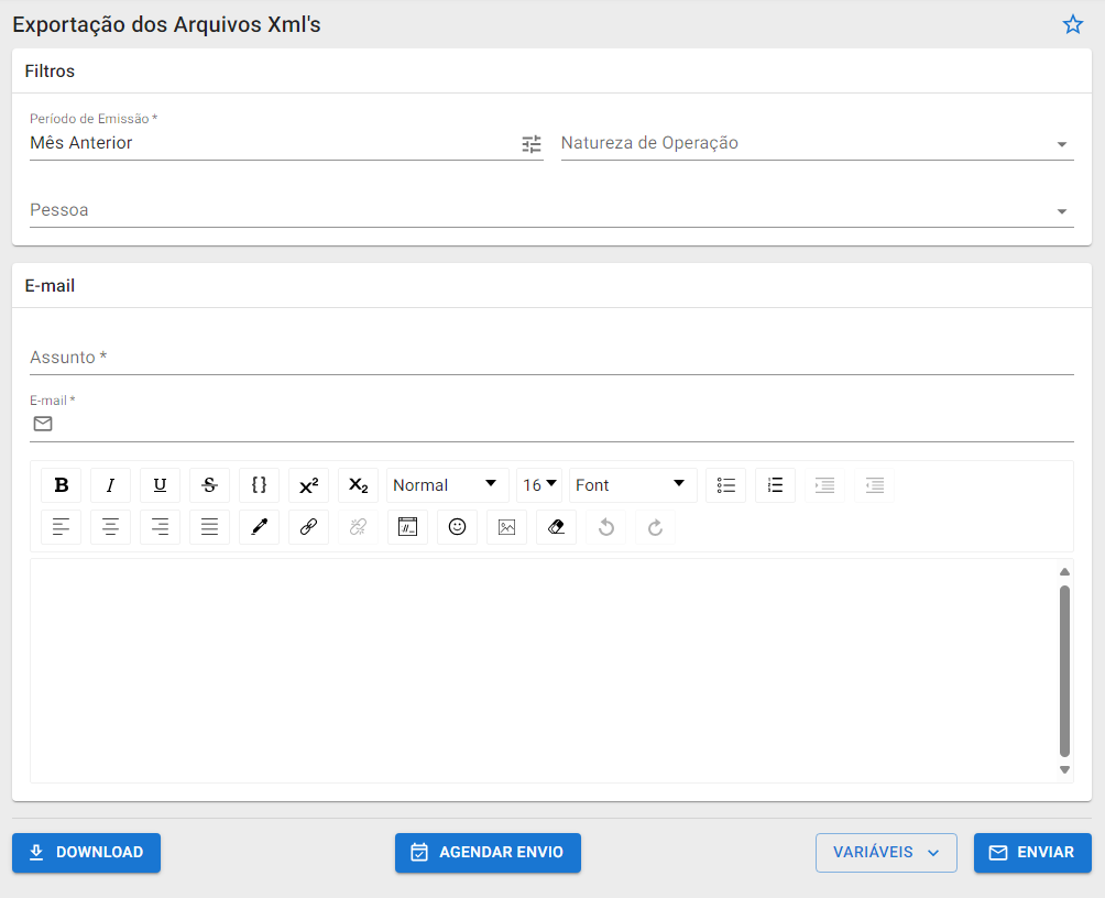 Agora é possível agendar o dia do mês em que os arquivos XMLs devem ser enviados à contabilidade automaticamente. Além disso, também foi criada a opção para fazer download do arquivo.
