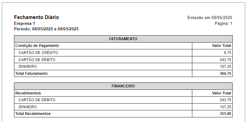 Criado relatório para demonstrar os totais por condição de pagamento no período informado.