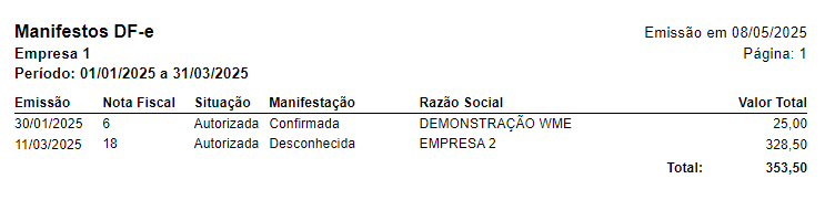Adicionado relatório que apresenta as manifestações fiscais relacionadas ao CNPJ da empresa.