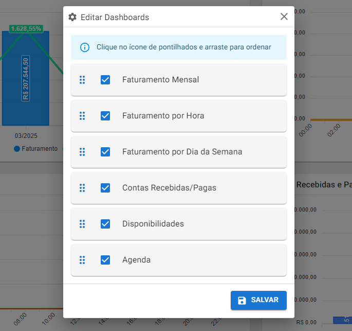Agora é possível definir quais itens devem ser exibidos e a ordem de apresentação.