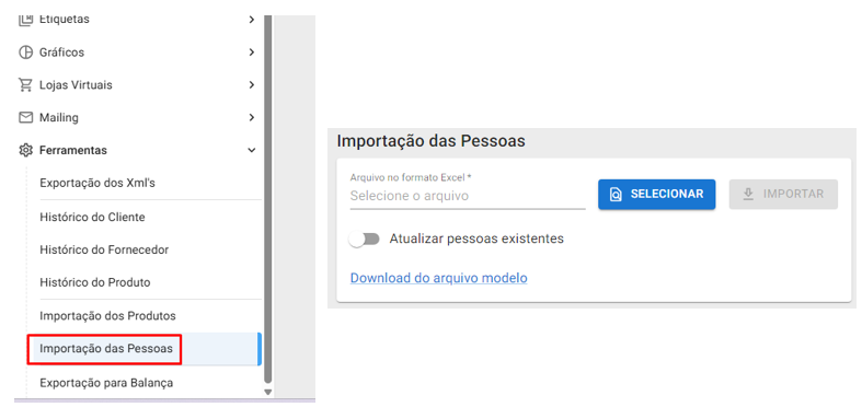 A partir de uma planilha padronizada é possível importar cadastros de Clientes, Fornecedores, Transportadoras e Colaboradores, ou atualizar informações de pessoas já cadastradas.