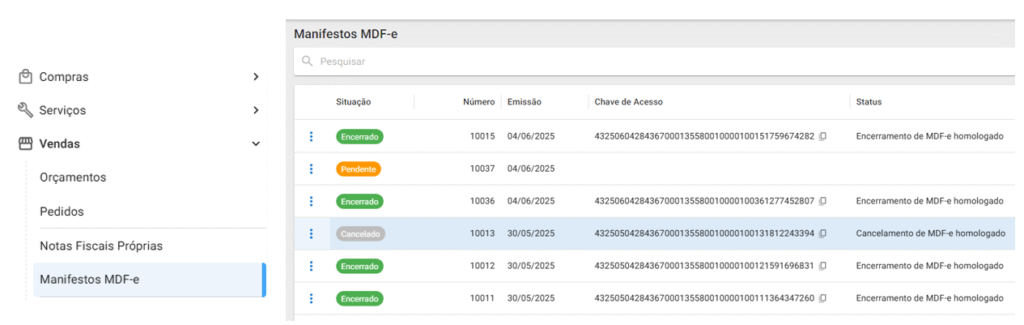 Criada a possibilidade de emissão de Manifesto Eletrônico de Documentos Fiscais (MDF-e) pelo sistema.