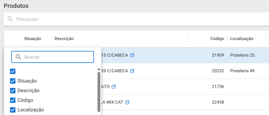 Agora é possível habilitar a coluna Localização para facilitar a identificação de onde os Produtos estão alocados.