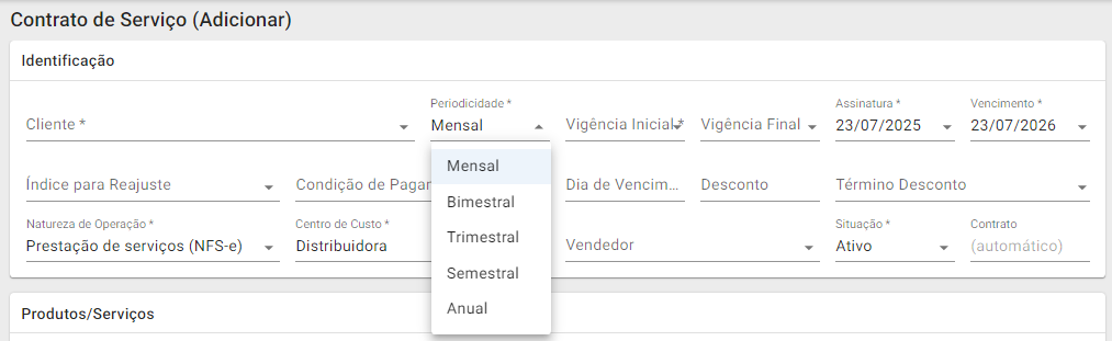 Agora é possível gerenciar a periodicidade de cobrança dos contratos.